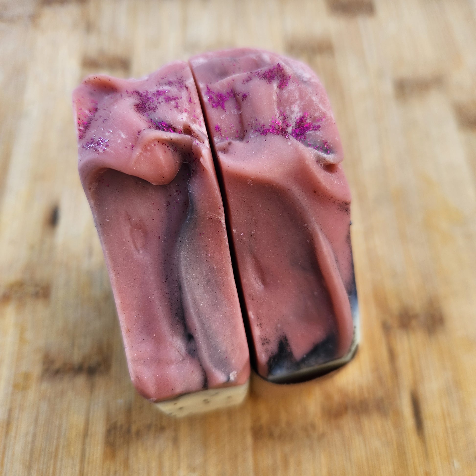 Ingredients: Tallow, Coconut Oil, Shea Butter, Castor Oil, Sweet Almond Oil, Olive Oil, Water, Lavender Essential Oil, Lemon Essential Oil, Pink Clay, Mica, Poppy Seeds